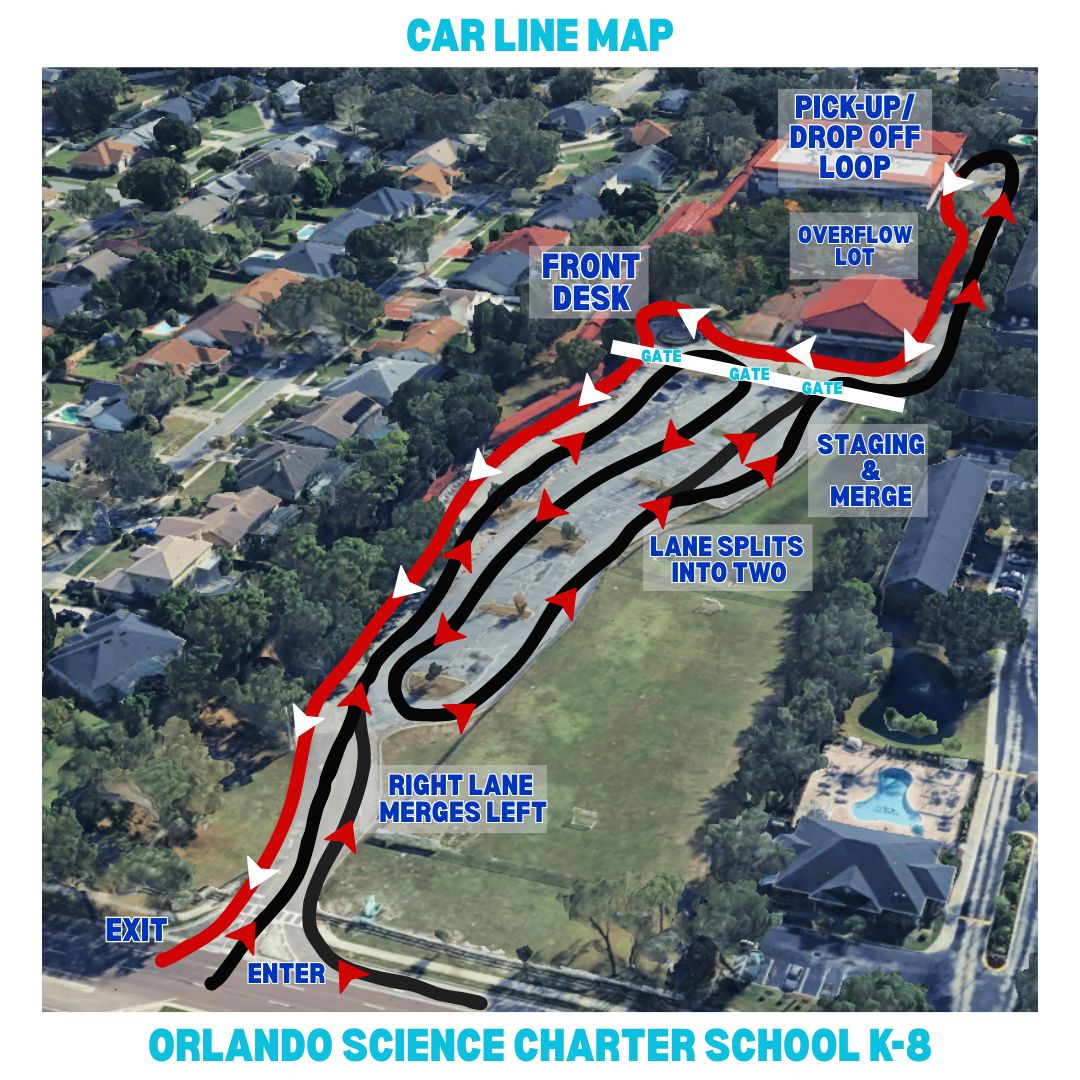 Gate closes PROMPTLY at 7:55am. Families arriving after 7:55 must park and walk up to the front desk to sign in their student as a late arrival.
